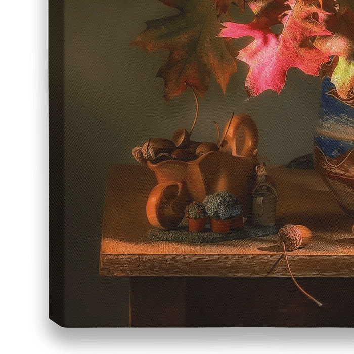 Bestelle dieses Stilleben Herbststrauß aus Eichenlaub von Mykhailo Sherman als Reproduktion auf Leinwand, Alu-Dibond, als Poster, Fototapete oder Acrylglasbild.