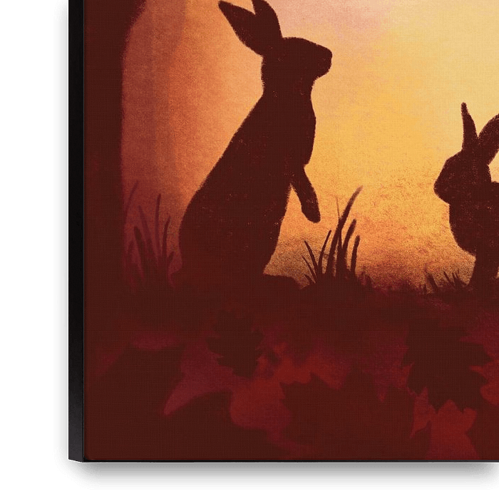 Holen Sie sich den warmen, stimmungsvollen Herbst ins Haus mit dieser von Waldorf inspirierten Illustration, auf der zwei niedliche Häschen gemeinsam durch eine Herbstlandschaft hoppeln. Umgeben von satten Rot-, Orange- und Goldtönen erwecken die Häschen den Charme und die Gemütlichkeit der Jahreszeit zum Leben. Dieser Kunstdruck…