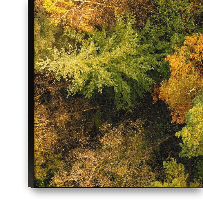 Bestelle das Foto Herbstwald mit bunten Blättern von oben gesehen von Sjoerd van der Wal Fotografie als Reproduktion auf Leinwand, Alu-Dibond, als Poster, Fototapete oder Acrylglasbild.