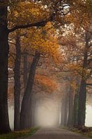 De oude eiken hebben een prachtige oranje kleur in de herfst van 2018.