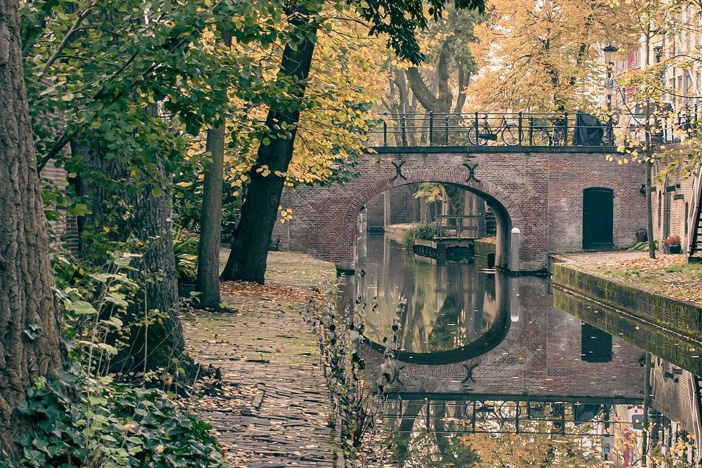 Die Nieuwegracht in Utrecht an einem schönen Herbstmorgen.