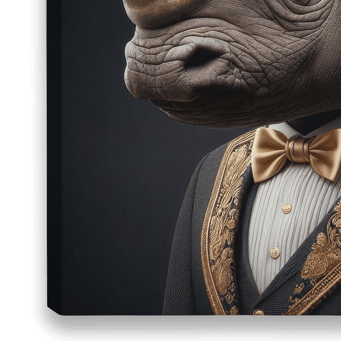 Betreten Sie die königliche Arena der Savanne mit diesem majestätischen Kunstwerk, in dem das mächtige Nashorn in einem stattlichen Anzug verewigt ist, umgeben von einer Aura des Geheimnisses und der Eleganz. Dieses Porträt strahlt nicht nur den unbeugsamen Geist des Nashorns aus, sondern auch ein Gefühl von königlicher Würde und…