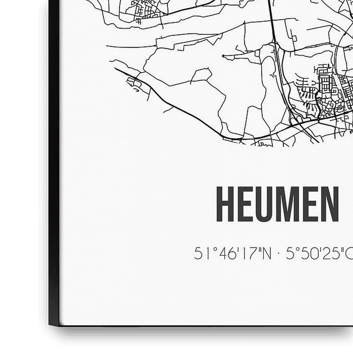 Bestelle dieses abstrakte Wandbild Heumen (Gelderland) | Karte | Schwarz und weiß von Ortsdrucke als Reproduktion auf Leinwand, Alu-Dibond, als Poster, Fototapete oder Acrylglasbild.
