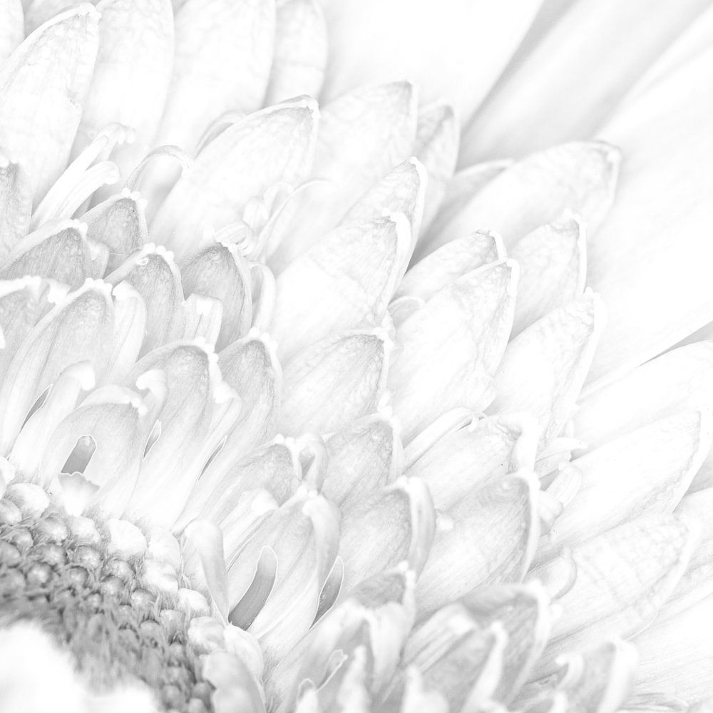Bewusst überbelichtetes Schwarz-Weiß-Foto eines Teils einer Gerbera.