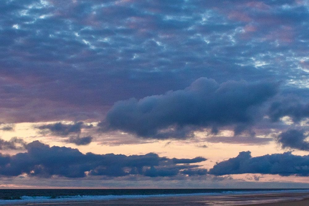 Abendhimmel mit Wolken am Atlantik am Plage Grand Crohot bei Lège-Cap-Ferret in Frankreich