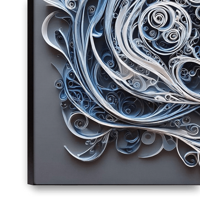 Lassen Sie sich mit "Heavenly Dance of Filigree" in eine Welt von ätherischer Schönheit entführen. Dieses digitale Kunstwerk fesselt die Fantasie mit einer abstrakten Rauchwolke, die in ein bezauberndes Spiel aus blauen, weißen und beigen Filigranpapiertönen gehüllt ist und vor einem ruhigen grauen Hintergrund…