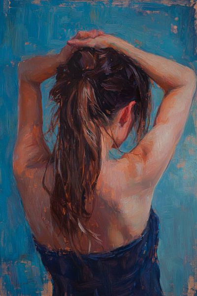 Bestelle dieses Porträt Hinterkopf und Blau von Poster Art Shop als Reproduktion auf Leinwand, Alu-Dibond, als Poster, Fototapete oder Acrylglasbild.