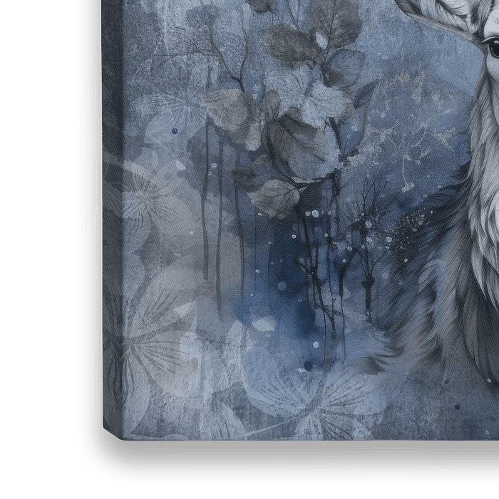 Bestelle dieses abstrakte Wandbild Hirsch Im Blauen Winterwald von Andrea Haase als Reproduktion auf Leinwand, Alu-Dibond, als Poster, Fototapete oder Acrylglasbild.