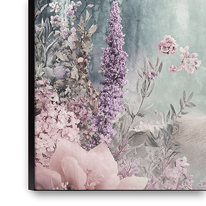 Dieses einzigartige Kunstwerk zeigt einen anmutigen Hirsch mit einem wunderschön verzierten Geweih, das mit zarten Blumen in sanften Pastellfarben übersät ist. Das Design strahlt eine märchenhafte Atmosphäre aus und passt perfekt in jeden Raum, in dem Natur und Kunst zusammenkommen dürfen. Die sanften Farbtöne und die detaillierten…