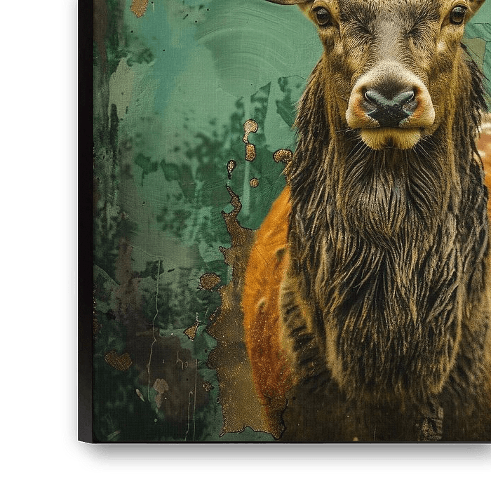 Dieses wunderschöne Design zeigt einen majestätischen Hirsch vor einem bunten, abstrakten Hintergrund. Die satten Farben und detaillierten Muster erwecken das Tier zum Leben und verleihen ihm ein fast magisches Aussehen. Perfekt für jeden Raum, der etwas mehr Flair und Eleganz gebrauchen kann, kombiniert dieser Kunstdruck Natur und Abstraktion auf einzigartige Weise. Ideal für Kunst- und Naturliebhaber, ist dieses Design sicher ein Blickfang in jedem Raum.