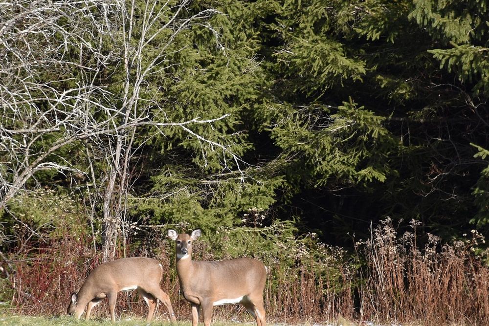 Hirsche auf einem Feld im Herbst, Quebec, Kanada