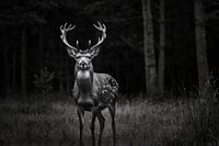 Dieses wunderschöne Schwarz-Weiß-Motiv zeigt einen majestätischen Hirsch, der in einem ruhigen Moment inmitten eines dunklen Waldes gefangen ist. Die Details des Tieres heben sich deutlich ab und verleihen dem Bild ein ruhiges, fast zeitloses Aussehen. Die subtilen Kontraste zwischen Licht und Schatten erzeugen einen starken visuellen…
