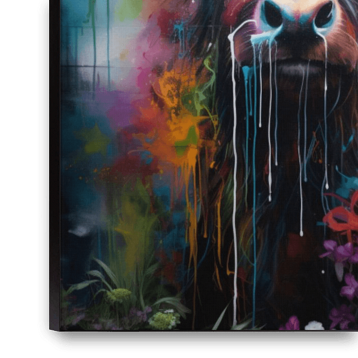 Entdecke unser einzigartiges Kunstwerk - das Hochland Rindvieh "Herbert" in einem modernen Streetart Design auf Leinwand.