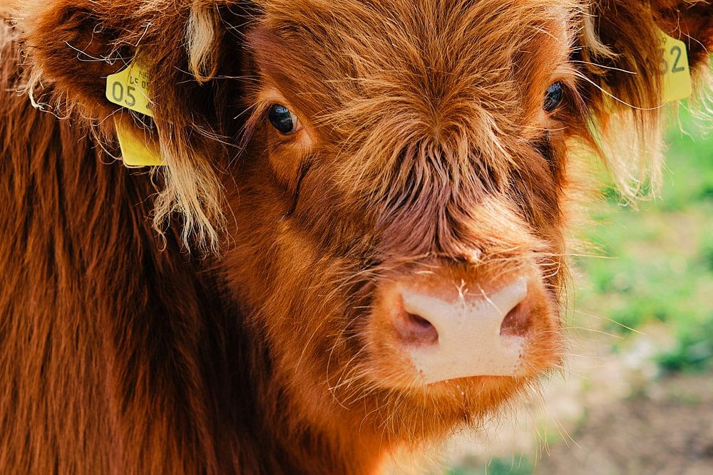 Entdecken Sie die zauberhafte Welt der Hochlandrinder mit diesem wunderschönen Druck eines Hochlandkalbes mit seinem charakteristischen langen, zotteligen Fell und den großen, neugierigen Augen. Die warmen Brauntöne des Fells harmonieren perfekt mit dem grünen Hintergrund der Weide, auf der das Kalb steht. Die gelben Ohrmarken verleihen dem Bild eine authentische landwirtschaftliche Note.