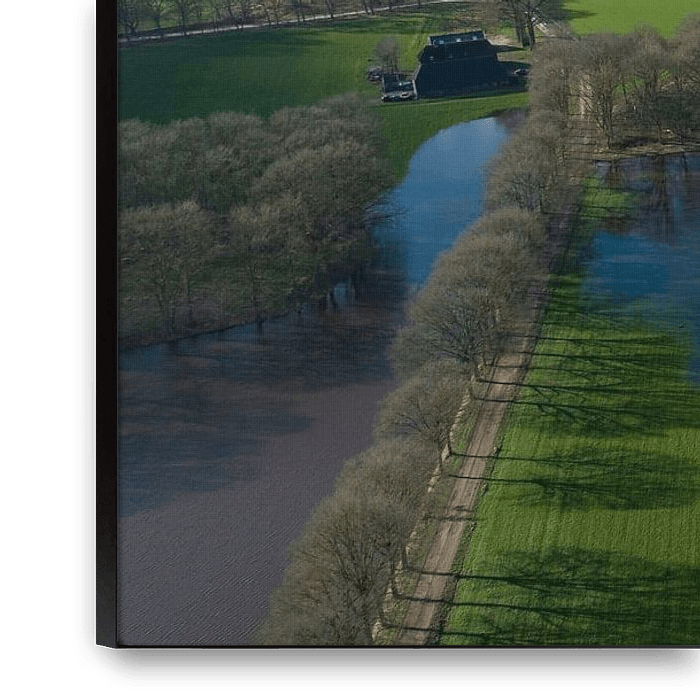 Bestelle dieses Landschafts-Wandbild Hochwasser der Vecht am Junne-Wehr drone vi von Sjoerd van der Wal Fotografie als Reproduktion auf Leinwand, Alu-Dibond, als Poster, Fototapete oder Acrylglasbild.