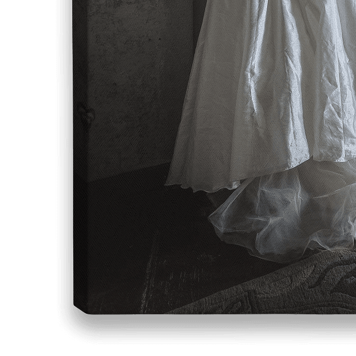 Bestelle das Foto Hochzeitskleid im Schlafzimmer von Inge van den Brande als Reproduktion auf Leinwand, Alu-Dibond, als Poster, Fototapete oder Acrylglasbild.