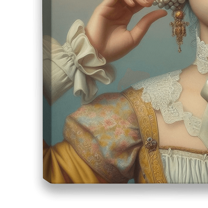 Ein surreales Porträt im Barockstil, bunten Pastelltönen und sanft getönten Blumen