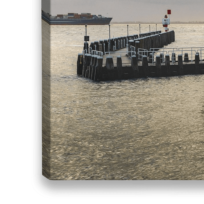 Holländische Wolken über dem Hafen von Vlissingen an der Küste von Zeeland mit einem vorbeifahrenden Schiff im Hintergrund