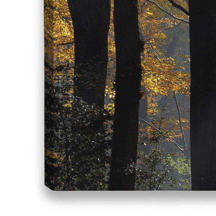 Goldene Blätter in den Holländischen Wäldern in Licht einer Sonne Harfe.
