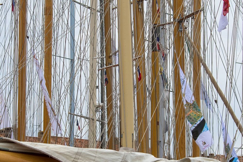 Die Segelyachten mit ihren hölzernen Schränken und Auslegern und vielen Metern Tauwerk und Seilen zum Hissen und Trimmen der Segel