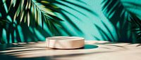 Bestelle dieses abstrakte Wandbild Holzplatte mit Palmblättern Schatten von Poster Art Shop als Reproduktion auf Leinwand, Alu-Dibond, als Poster, Fototapete oder Acrylglasbild.