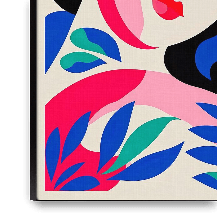 Ihre gewählte Kunst auf Leinwand, gespannt in einem Aluminiumrahmen. Schnell und einfach austauschbar für eine frische Ausstrahlung und ganz nach Ihren Wünschen.