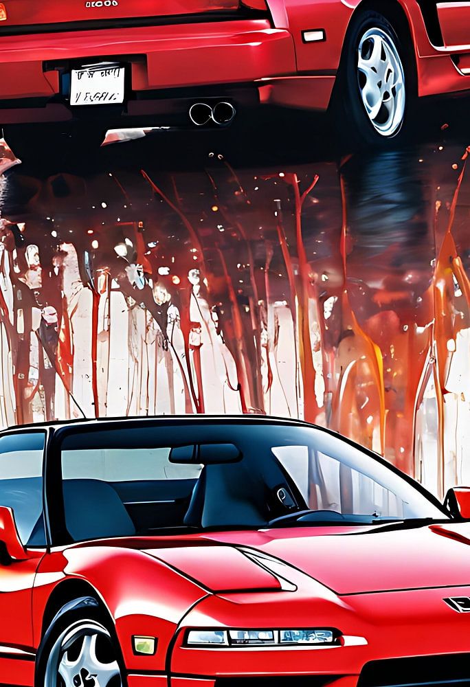 Honda NSX splash art, hergestellt von AI, damit dieses ikonische Auto noch besser zur Geltung kommt und ihm gerecht wird.