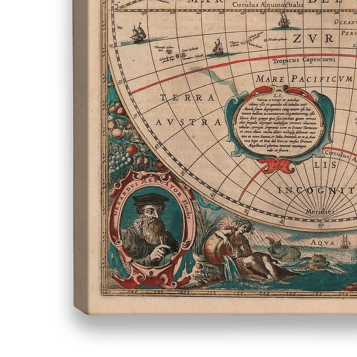 Bestelle Hondius Weltkarte 1641 als Reproduktion auf Leinwand, Alu-Dibond, als Poster, Fototapete oder Acrylglasbild.