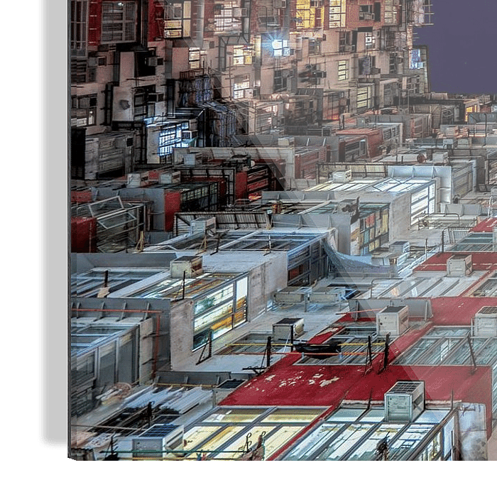 Während meiner Reise nach Hongkong durfte dieser ikonische Anblick nicht fehlen. Zwischen den hohen Wohngebäuden richtete ich meine Kamera direkt nach oben. Das Ergebnis ist ein fast surreales Bild: ein Quadrat aus Beton, Stahl und Glas, das den Nachthimmel einrahmt.