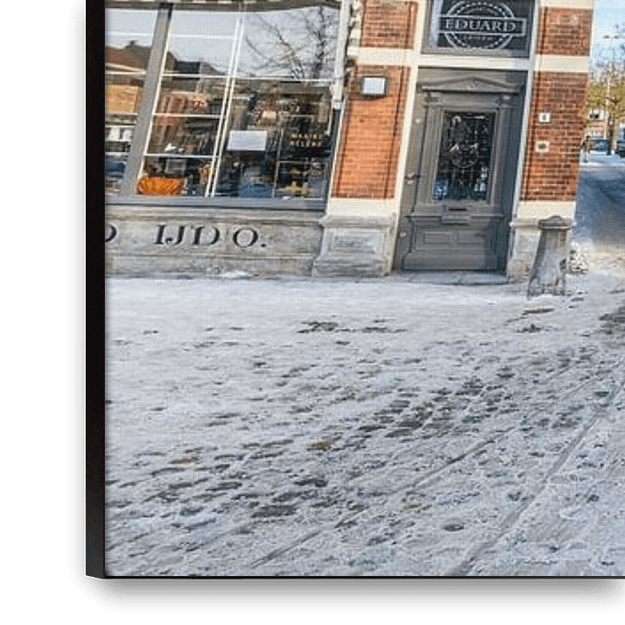 Ein seltenes Panorama im Schnee von der Hooglandse Kerkgracht in Leiden.