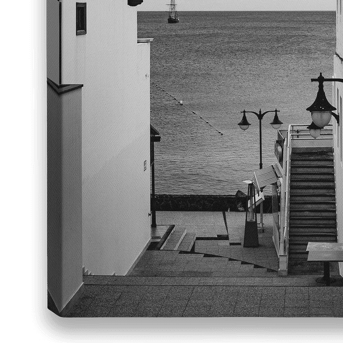 Gasse auf Lanzarote mit Schiff in der Ferne
