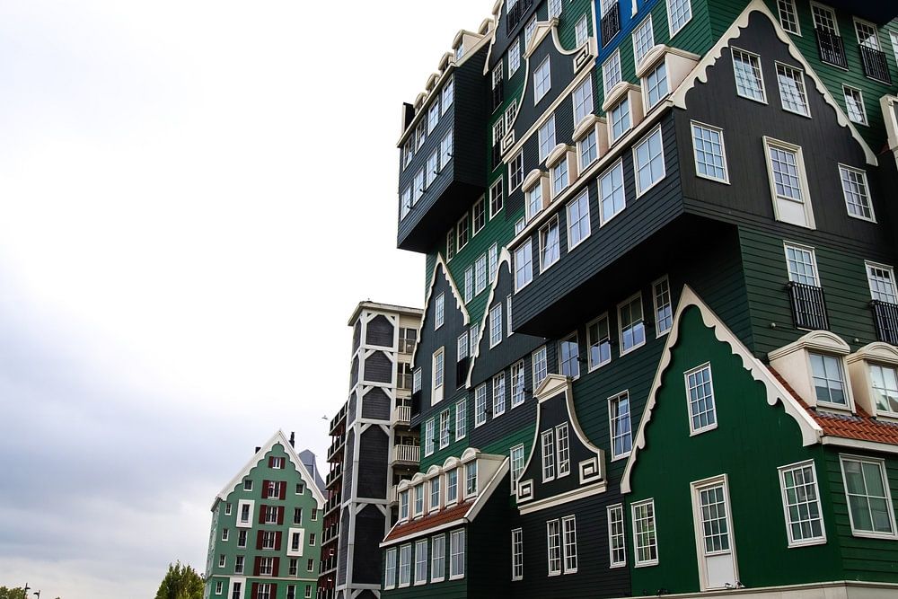 Dieses Hotel in Zaandam scheint aus vielen kleinen Häusern zu bestehen, die typisch für die Region Zaan sind. Es ist ein ganz besonderes Gebäude.