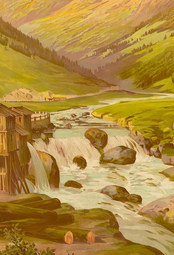 Hugo d’Alési (1849–1906) war ein französischer Maler, Grafiker und Plakatkünstler, der vor allem für seine farbenfrohen Reiseplakate bekannt wurde. Er gestaltete zahlreiche kunstvolle Werbeplakate für Eisenbahngesellschaften und touristische Reiseziele in Frankreich und Europa. Seine Werke zeichnen sich durch lebendige Farben, romantische Landschaftsdarstellungen und einen charakteristischen Stil aus, der die Sehnsucht nach Reisen und Entdeckung weckt.