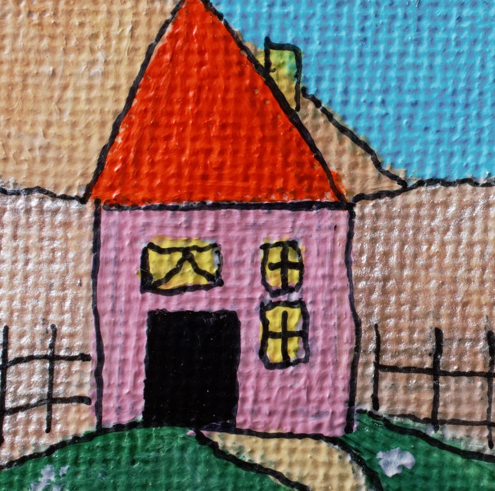 Vier kipjesAngelique van 't Riet Minicanvas Het dorpAngelique van 't Riet