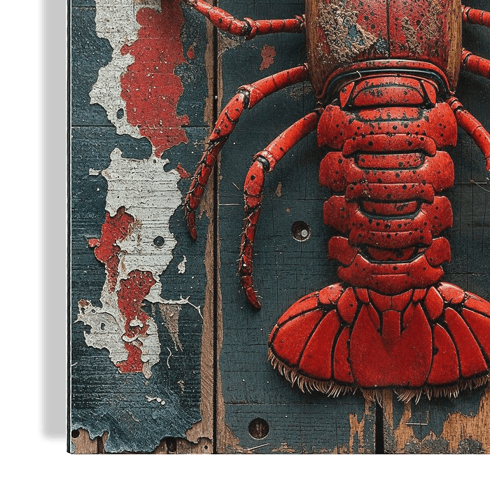 Holländischer Hummer, kanadischer Hummer in Rot auf 4 Brettern aus Altholz.