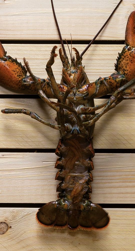 Hängen Sie mehrere Fotos aus dieser Serie nebeneinander auf, um einen einzigartigen und spielerischen Effekt zu erzielen. Alle Fotos aus dieser Serie: Hummer, Fisch, Brot, Pak Choi, Karotte, Austern, Gräten, Salat, Fleisch