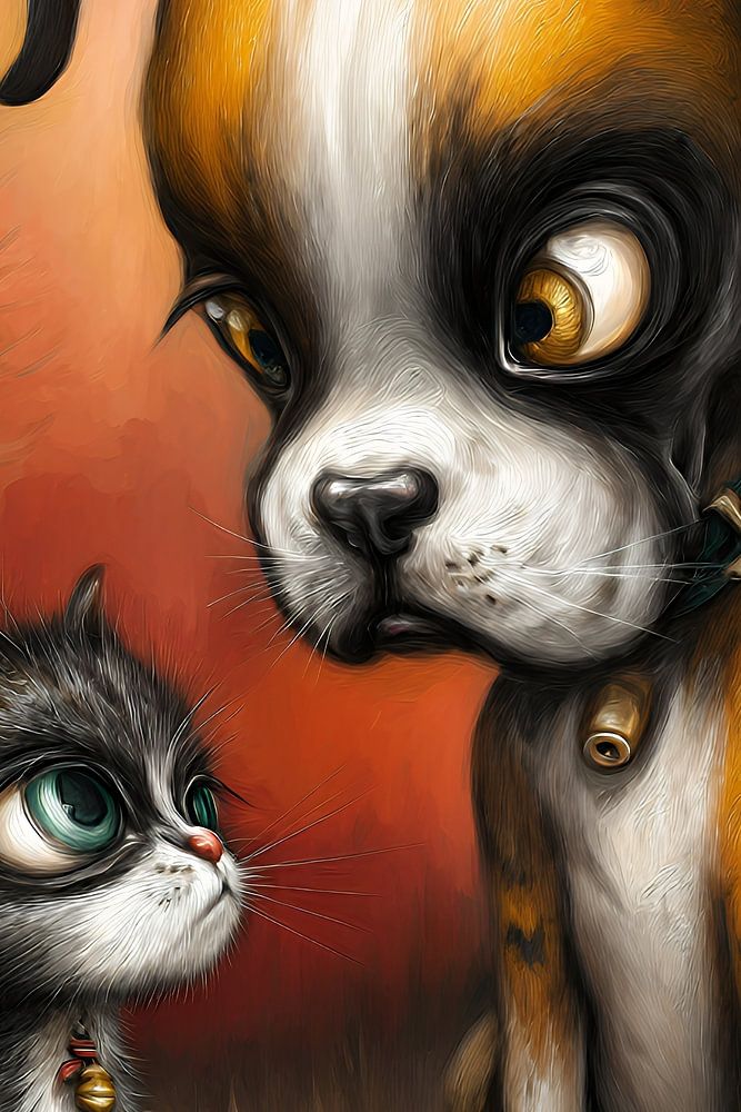 Entdecken Sie unsere Sammlung von Cartoon-Gemälden mit Hund und Katze - eine fröhliche Mischung aus Kreativität und Charakter, die speziell für Tier- und Designliebhaber entworfen wurde.