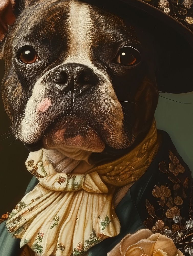 Lord Barkington, ein stolzer Dackel mit einem stattlichen Schnauzbart, führte die Gruppe mit würdevollem Auftreten an. Er trug einen spitzenbesetzten Kragen und eine maßgeschneiderte Jacke, die seine stattliche Erscheinung unterstrich. Neben ihm schritt Lady Pawsbury, ein eleganter Pudel, der ein fein gestricktes Kleid und eine glitzernde Halskette trug, die ihren Hals wie ein kostbares Juwel schmückte.