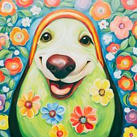 Bestelle dieses Blumen-Wandbild Hundesohn Snoosy Gemälde von ComfortQ als Reproduktion auf Leinwand, Alu-Dibond, als Poster, Fototapete oder Acrylglasbild.
