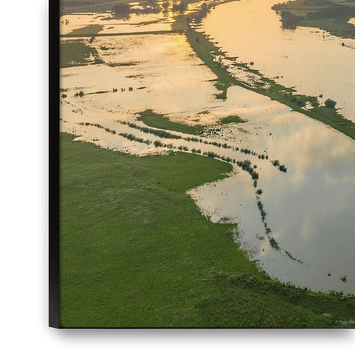 Bestelle dieses Landschafts-Wandbild IJssel-Landschaft bei Sonnenuntergang von oben gesehen von Sjoerd van der Wal Fotografie als Reproduktion auf Leinwand, Alu-Dibond, als Poster, Fototapete oder Acrylglasbild.