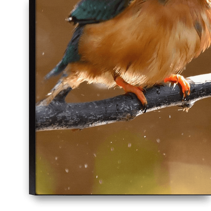 Bestelle dieses Vögel Wandbild IJsvogel schuddend met druppels von Sascha van Dam als Reproduktion auf Leinwand, Alu-Dibond, als Poster, Fototapete, ArtFrame oder Acrylglasbild, maßgefertigt in höchster Qualität.