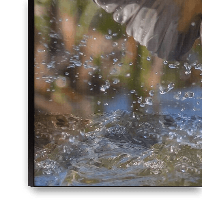 Ihre gewählte Kunst auf Leinwand, gespannt in einem Aluminiumrahmen. Schnell und einfach austauschbar für eine frische Ausstrahlung und ganz nach Ihren Wünschen.