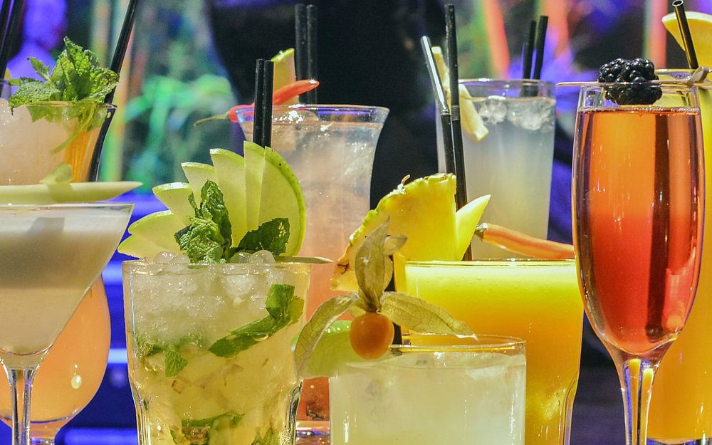 Berühmte Ibiza Bambuddha-Cocktail-Kollektion in farbenfroher Umgebung.