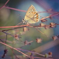 Mit einem Makroobjektiv gemacht, damit die Flügel als Ganzes scharf sind. Der Schmetterling hebt sich durch den weichen Hintergrund wunderbar ab.