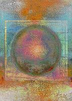 Zentrierter Kreis im Quadrat mit groben Pinselstrichen im Vordergrund und Hintergrund.