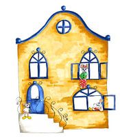 Bestelle diese Illustration Illustrationshaus mit Mäusen von Ivonne Wierink als Kunstdruck auf Leinwand, Alu-Dibond, als Poster, Fototapete oder Acrylglasbild.