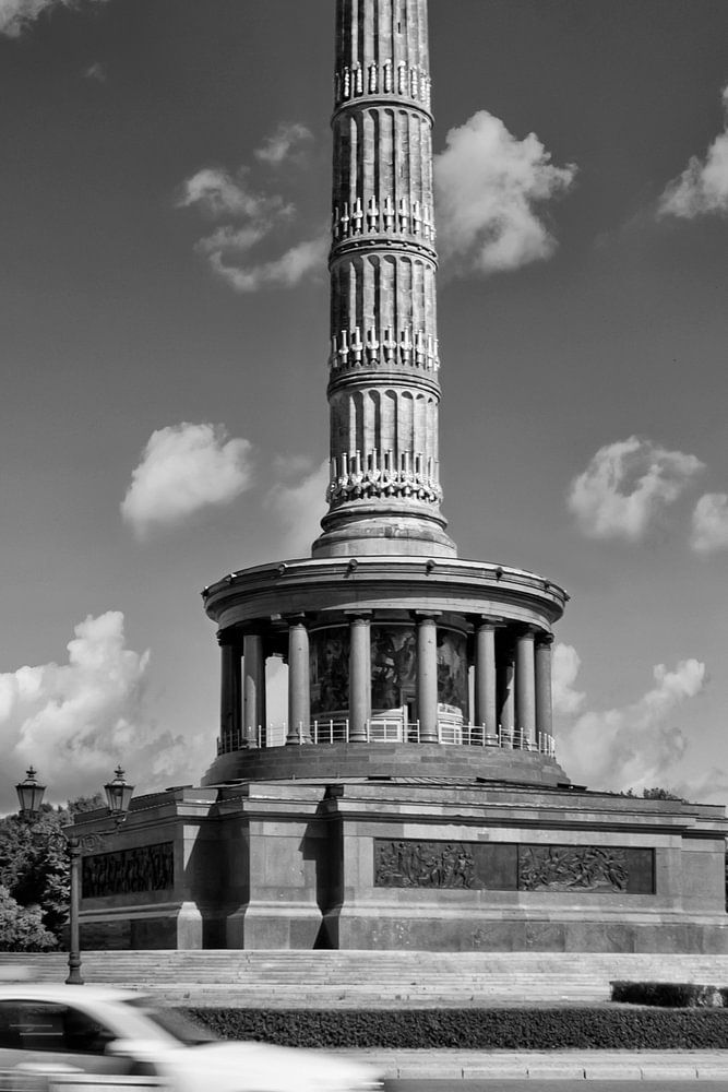 Die Siegessaeule auf dem Grossen Stern inmitten des Grossen Tiergartens in Berlin wurde von 1864 bis 1873 als Nationaldenkmal der Einigungskriege nach einem Entwurf von Heinrich Strack erbaut. Die Saeule traegt eine von Friedrich Drake geschaffene Bronzeskulptur in Form einer weiblichen Figur, der Viktoria (im Volksmund Goldelse genannt). Fantastisches Stadtmotiv aus einer Serie weiterer urbanen Impressionen.