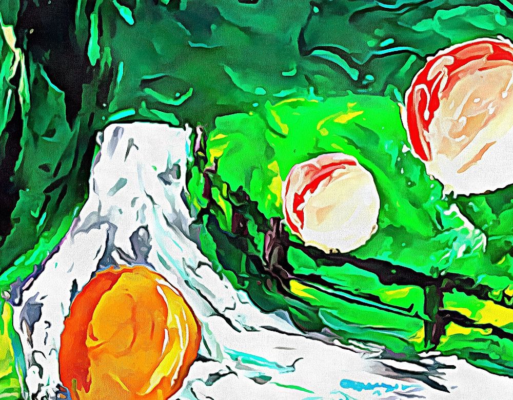 Das Konzept der Achtsamkeit besteht darin, ständig präsent zu sein, unabhängig von dem, was wir erleben, und nicht übermäßig zu reagieren oder überwältigt zu sein. Dies ist eine digitale Version eines Original-Acrylgemäldes, das meine Vorstellung vom Sitzen mit Blick auf eine schöne Landschaft darstellt. Die Kreise oder Kugeln stellen Gedankenformen dar, die immer präsent sind, denn in dem Moment, in dem wir still sitzen, dringen alle möglichen Gedanken in unseren ruhigen Geist ein. Diese Gedankenformen sind jedoch neutral und identisch, was bedeutet, dass die dargestellte Person achtsam sitzt und mit ihrer Umgebung präsent ist. Immer achtsam.