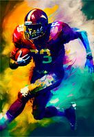 Die leuchtenden Farben und ausdrucksstarken Linien fangen die Geschwindigkeit und Energie des American Football wunderbar ein.
