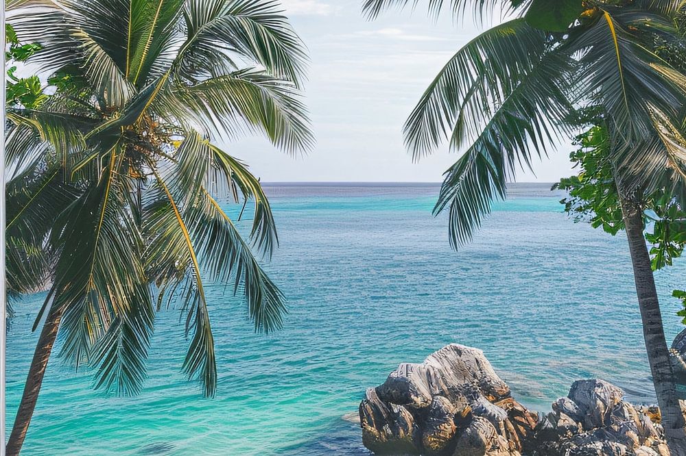 Träumen Sie vom Urlaub? Dieses Gemälde eines tropischen Strandes wird Sie sofort in Sommerstimmung versetzen. Perfekt für Ihr Schlafzimmer oder Ihr Wohnzimmer.